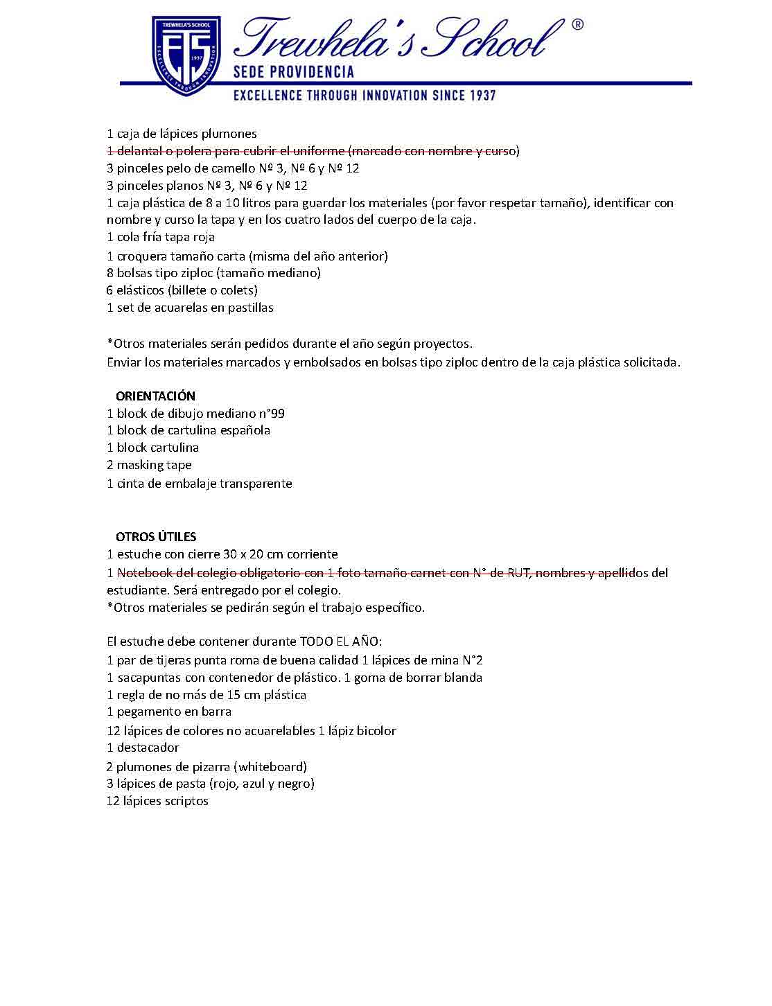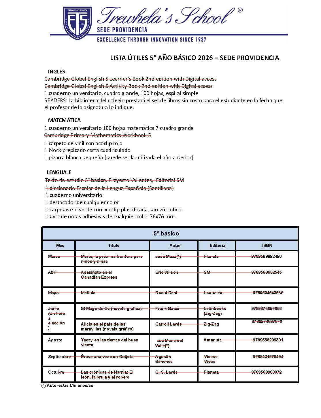 07. Lista Escolar Trewhellas School 5st grade 2026